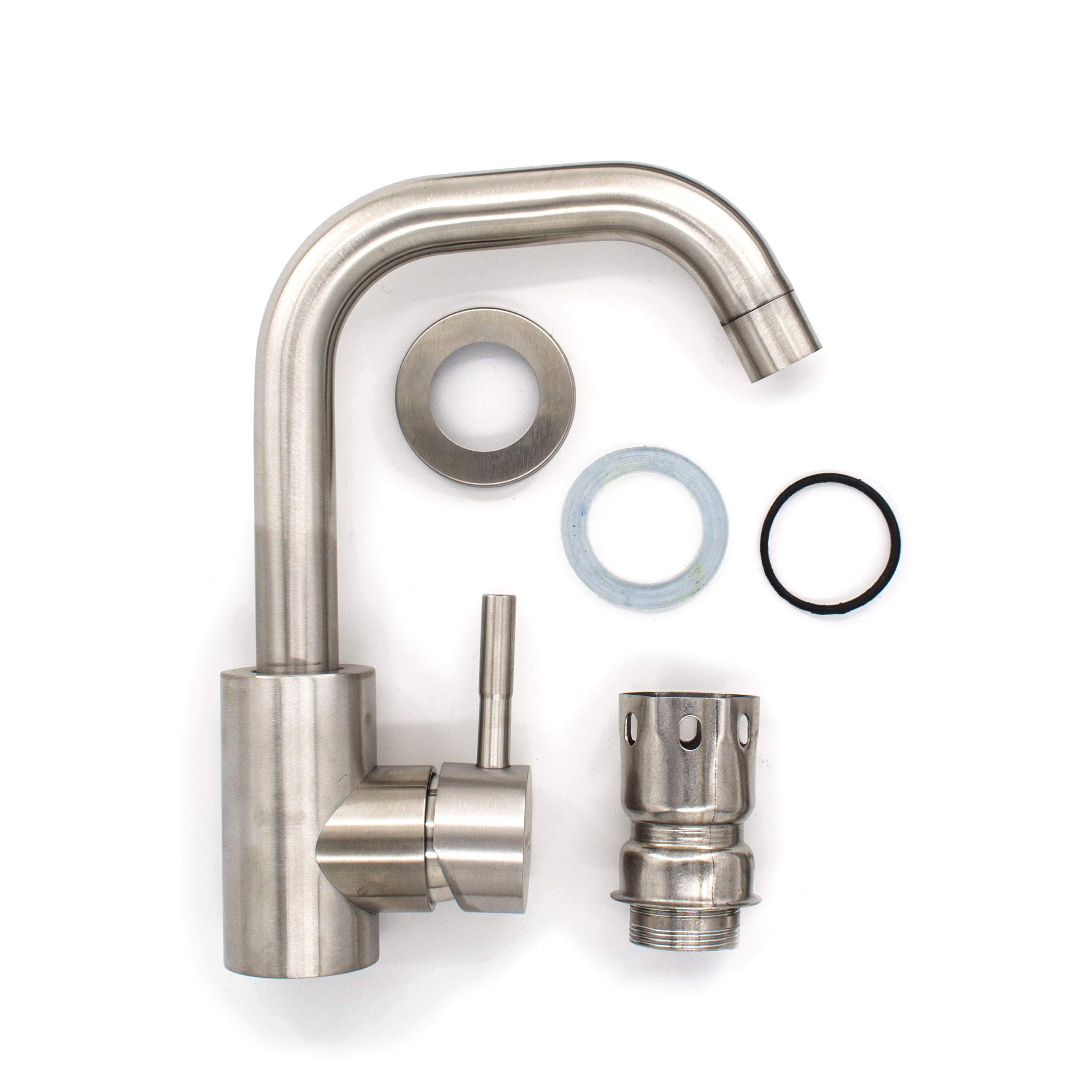 Смеситель позволяет регулировать поток воды и получать воду требуемой температуры при смешивании горячей и холодной воды, изготовлен из нержавеющей стали. Смеситель однорычажный, крепление гайка, картридж 40 мм.